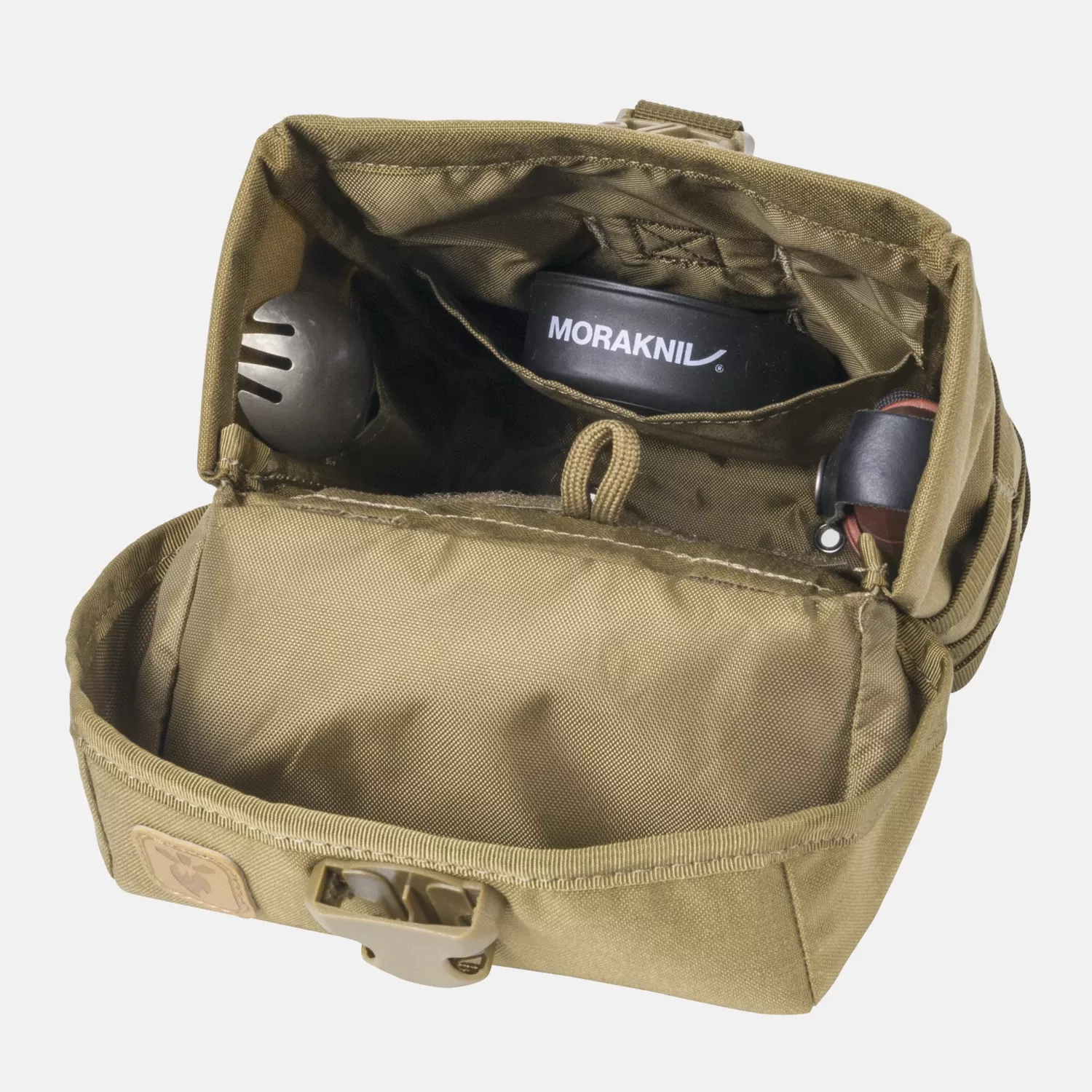 Дизайн подсумка E&E вдохновлен прототипом, который использовали британские солдаты, и изготовлен в соответствии с военными стандартами. Его обтекаемый профиль облегчает побег и уклонение во время кризисных ситуаций, на что намекает название «E&E Pouch», что означает «побег и уклонение». В основном отделении можно разместить снаряжение для выживания, оборудование для бушкрафта, флягу и пайки. Ключевым преимуществом этого портативного военного подсумка является его легкость, достигаемая за счет использования современных материалов, включая высокопрочный нейлон.