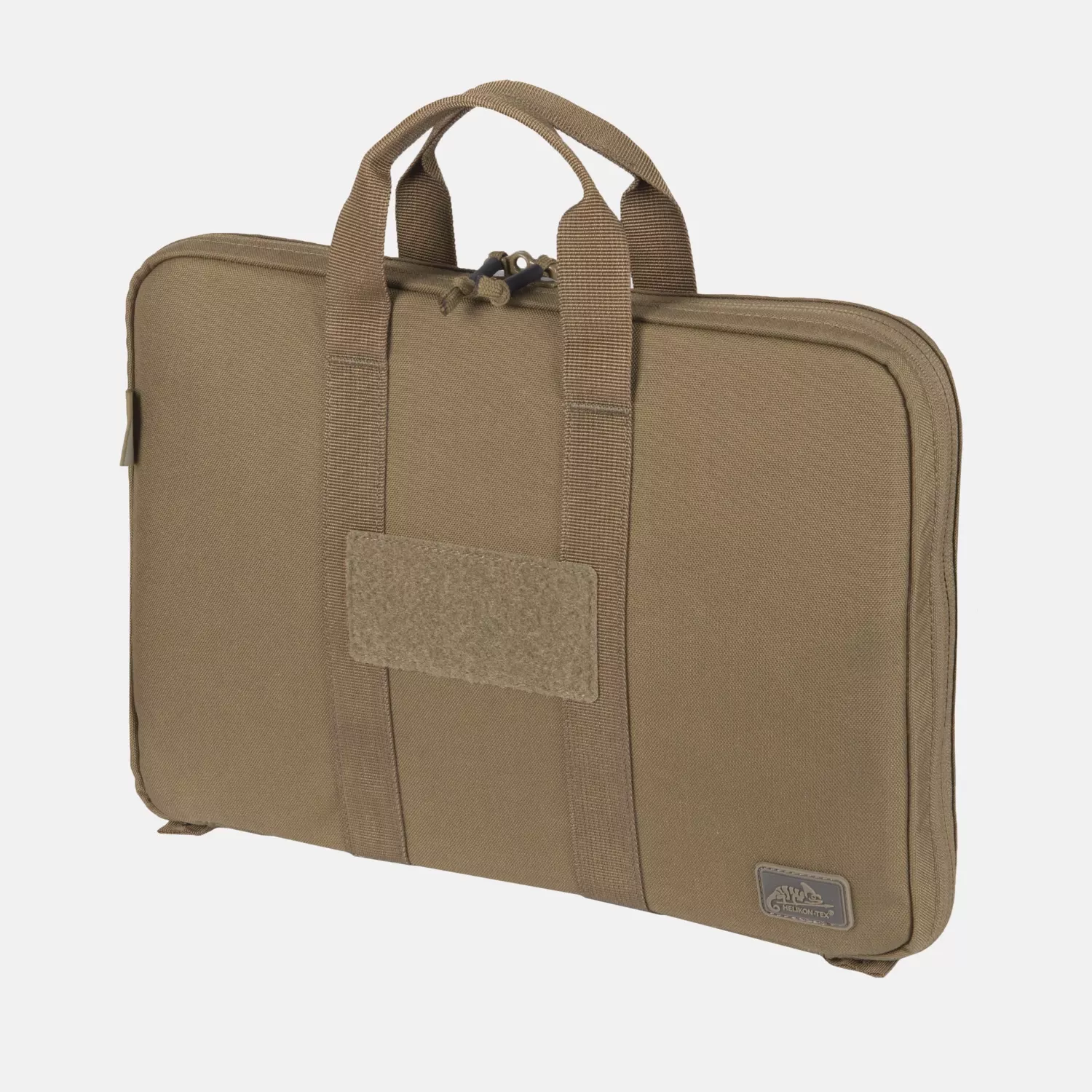 Двойной пистолетный кейс эффективно защищает короткие пистолеты и револьверы. С одной стороны, помимо двух держателей для оружия, расположены три дополнительных отделения для магазинов. Внутренняя панель на липучке позволяет прикреплять совместимые вставки. С другой стороны тактического оружейного кейса находится плоский карман, закрывающийся на липучку и оснащенный резиновым органайзером с пятью отделениями. Материал изготовлен из сбалансированной смеси нейлона и полиэстера, что делает военный кейс чрезвычайно легким и исключительно прочным. Изделие усилено лентой, которая также служит переносной ручкой.