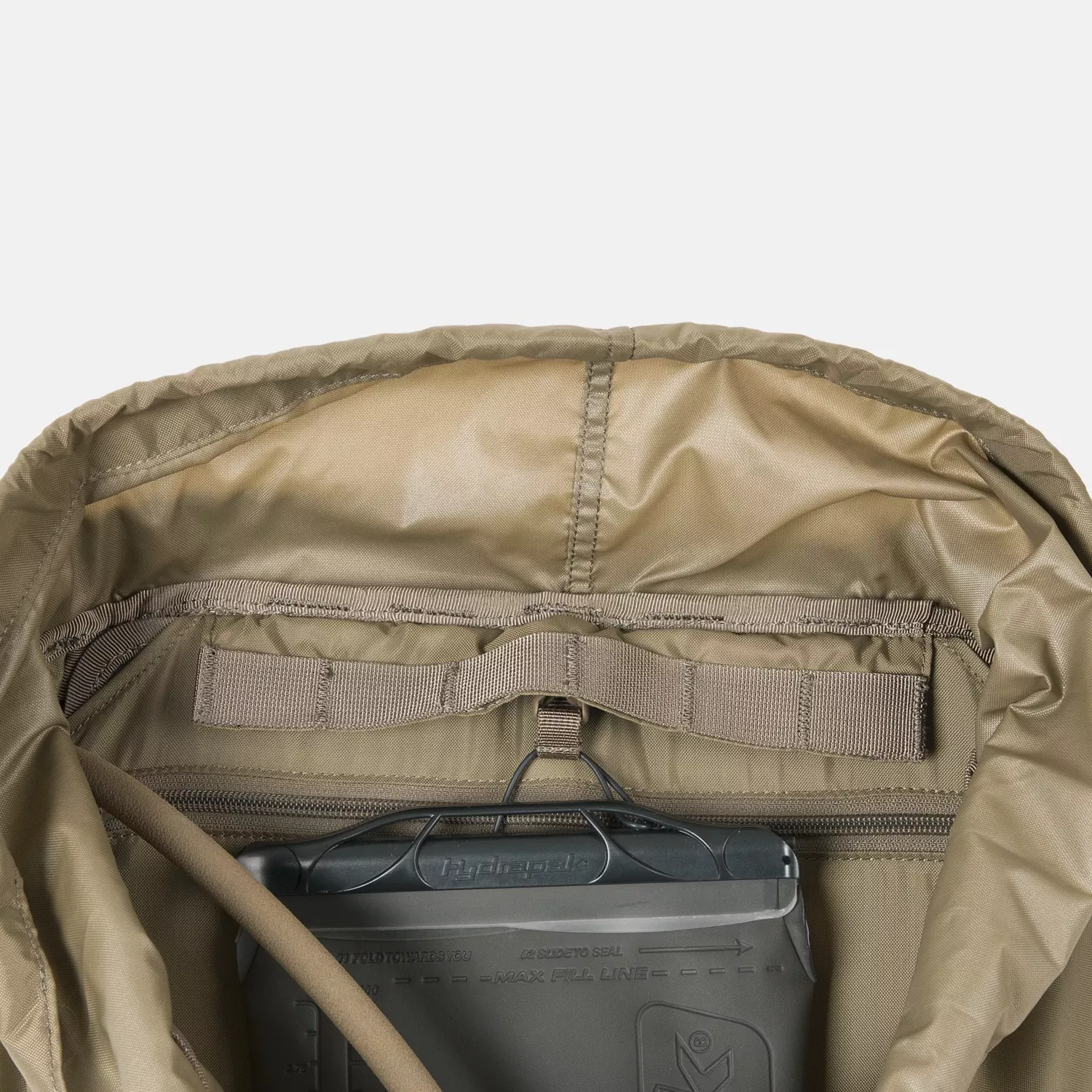 Основное отделение Matilda просторное и простое – без лишних разделителей для максимальной гибкости при упаковке. Внутри вы найдете отделение для питьевой системы и стропы MOLLE для организации снаряжения.