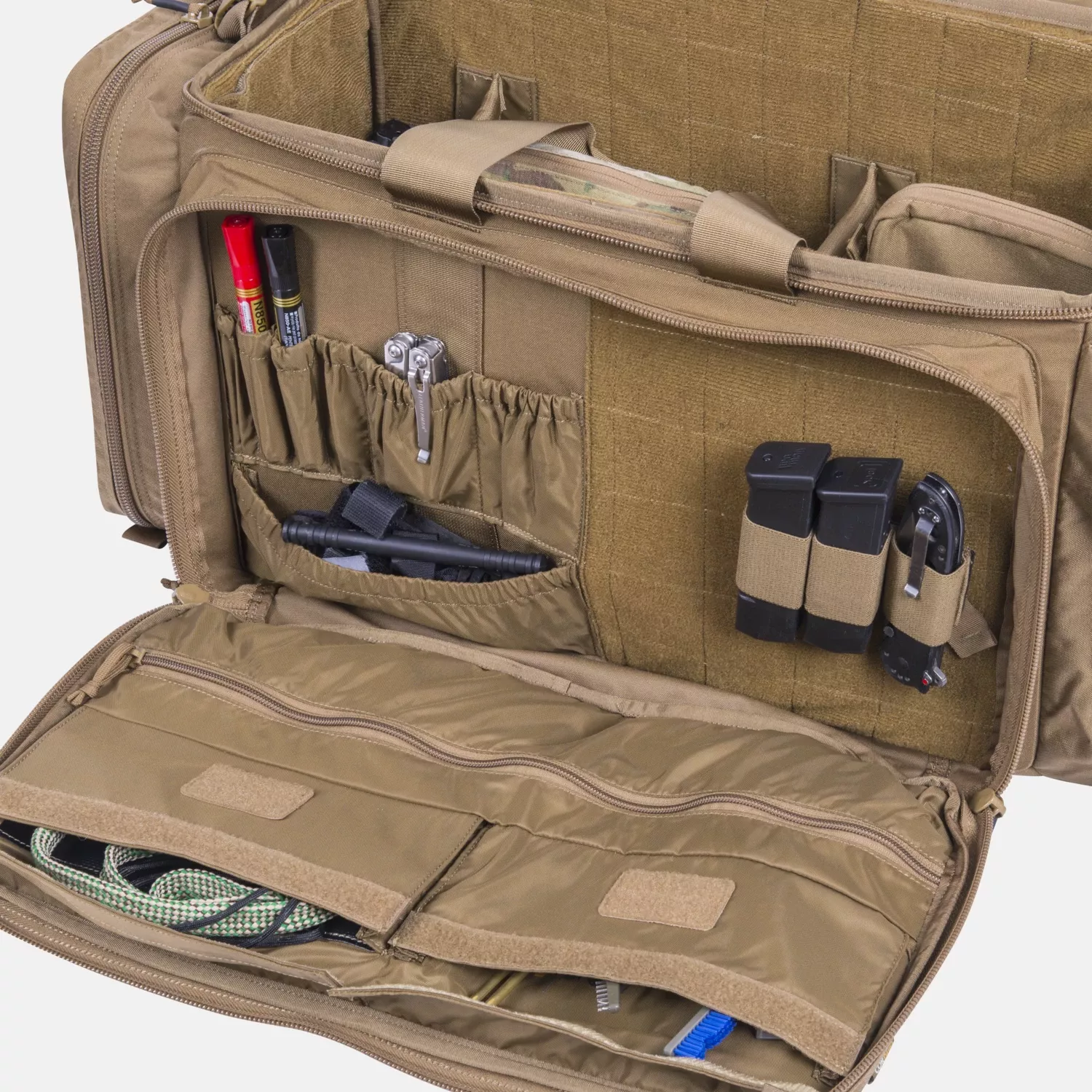 Сумка имеет множество карманов, обеспечивающих легкий доступ к инструментам, аптечкам или принадлежностям для обслуживания огнестрельного оружия, включая два боковых кармана, два плоских кармана на липучках и три просторных кармана внутри клапана. Кроме того, один из карманов оснащен органайзером для аксессуаров. Внутреннее отделение можно организовать в соответствии с индивидуальными потребностями благодаря двум съемным разделителям для самоконфигурации и системе панелей на липучках, совместимой с VIS (Versatile Insert System). Пользователи могут самостоятельно выбирать расположение органайзеров, подсумков для магазинов и кобур.