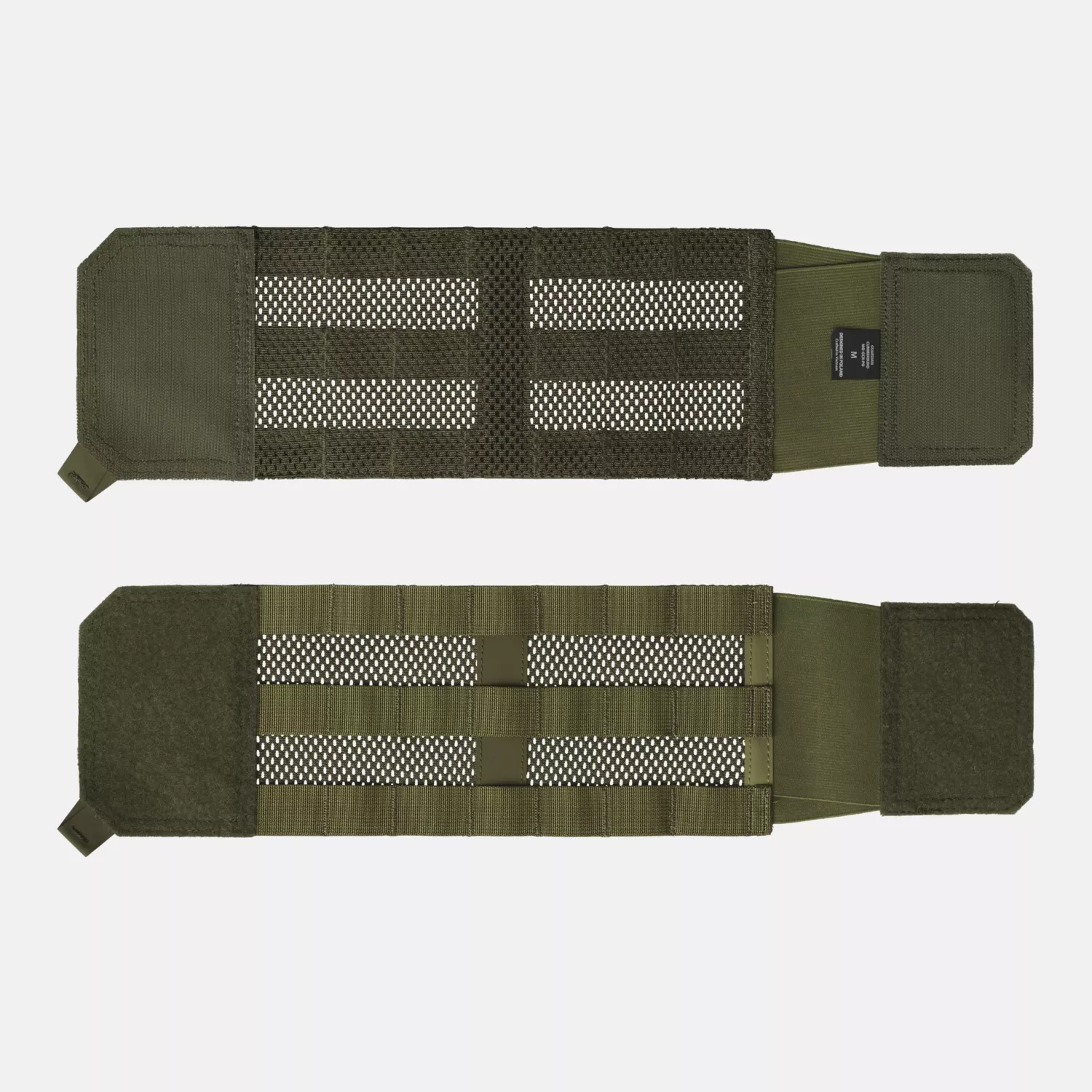 Пояс представляет собой комплект из двух боковых панелей, позволяющих застегивать переднюю и заднюю части жилета. Универсальная конструкция делает изделие совместимым с другими бронежилетами, представленными на рынке. Пояс изготовлен из прочной структурной сетки, обеспечивающей достаточную вентиляцию даже при наличии снаряжения. Модульная система, совместимая с MOLLE/PALS, пришита к поверхности. Под ремнями модульной системы вшита каркасная панель из противоскользящего материала Hypalon. Она стабилизирует переносимое снаряжение и обеспечивает самому поясу достаточную жесткость. Панели крепятся к жилету с помощью липучек. Противоскользящие ручки из гипалона облегчают надежный захват пояса при застегивании и расстегивании.
