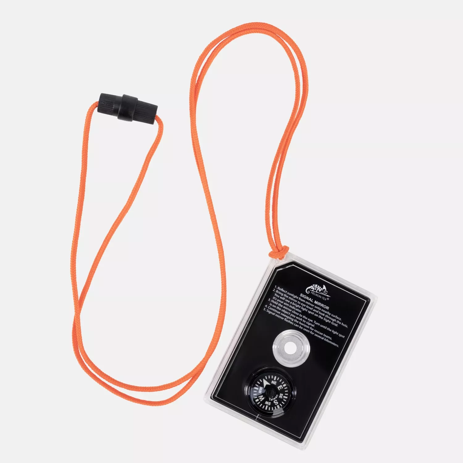 Небольшое спасательное зеркало, предназначенное для направления отраженного от него солнечного света на большие расстояния. Отражение света на коротких расстояниях просто, если вы можете видеть его на дереве или стене. На большом расстоянии обычное зеркало не может обеспечить такую точность. Сигнальное зеркало имеет специальное отверстие, которое работает как коллиматор. Таким образом, вы можете направлять отраженный свет на большие расстояния. В случае чрезвычайной ситуации вы можете вызвать помощь сигналом SOS, направив его на корабль или самолет. Его видимость зависит от солнечного света, погоды и местности, но в хороших условиях отраженный свет можно увидеть даже с расстояния в несколько километров. На обратной стороне зеркала Signal Mirror находятся инструкция и аварийный компас, что делает его максимально простым спасательным комплектом.