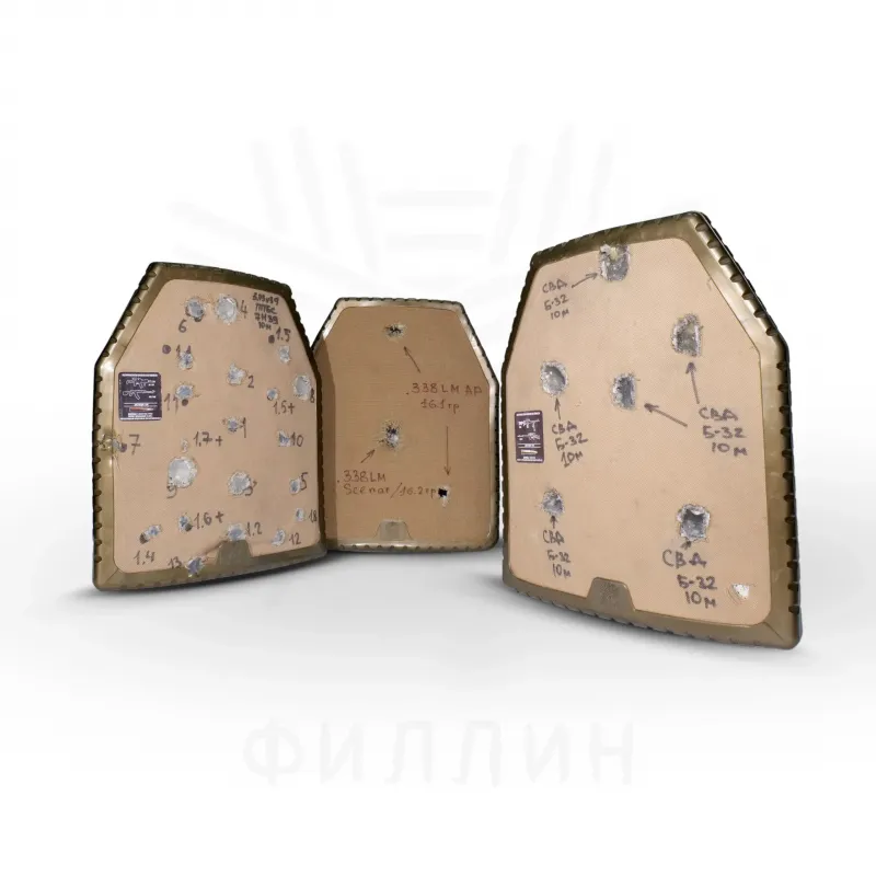Бронеплиты «Филлин Бр5» разработаны в результате многолетней работы, научного подхода и десятков отстрелов. В ходе итоговых испытаний были использованы боеприпасы: