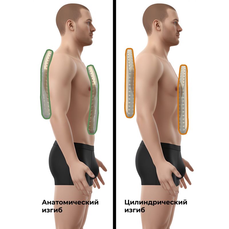 • Вертикальный и горизонтальный изгиб: Повторяет естественные изгибы тела в области торса для равномерного распределения нагрузки и улучшенного прилегания.