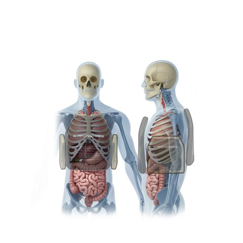 Конструкция бронепанели учитывает анатомические особенности строения грудной клетки для обеспечения повышенного комфорта ношения: