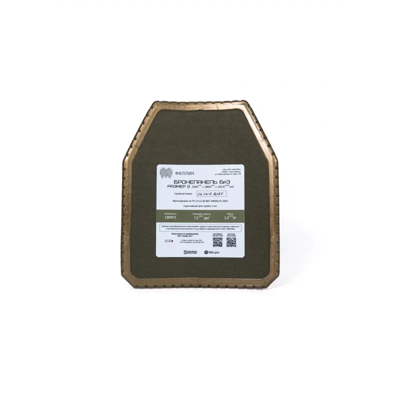 Сертифицированная бронепанель уровня защиты Бр3+, выполненная из высокомолекулярного полиэтилена (СВМПЭ). Продукт создан с применением передовых технологий и прошел полный цикл испытаний. Оптимальное сочетание защитных свойств, малого веса и эргономичной формы делает панель современным решением для индивидуальной бронезащиты.