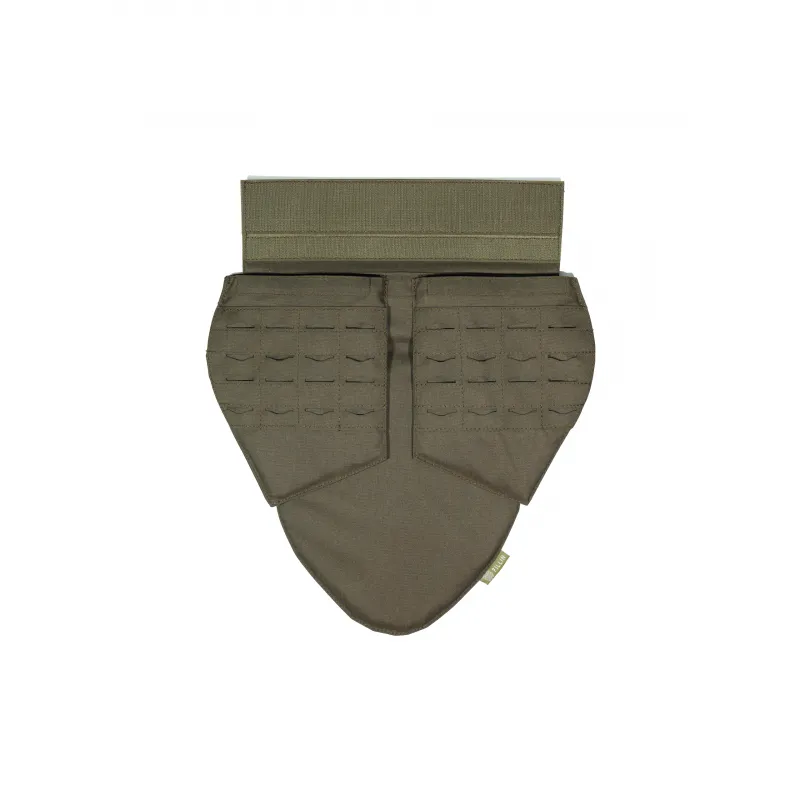 Модуль защиты паха из трёх раздельных элементов. Такая конструкция позволяет эффективнее защищать область паха при интенсивном движении и стрельбе с колена, адаптируясь под положение пользователя.