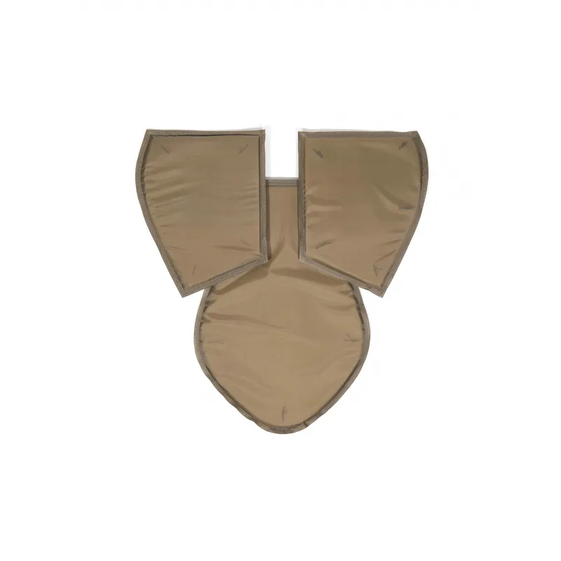 Комплект противоосколочных пакетов по классу защиты С2 для установки в трёхлепестковый чехол модуля защиты паховой зоны. Противоосколочные пакеты состоят из комбинации слоёв СВМПЭ и арамидных тканей. Пакет герметично упакован в водонепроницаемую ткань с мембранными свойствами. По все пакеты запаиваются ультразвуковой машиной для предотвращения попадания влаги внутрь.