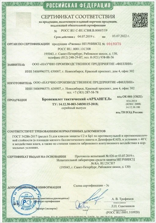 К каждому сертификату прилагается протокол испытаний на 17 страницах. Самое главное по «Ржевке» — это единственный государственный сертификационный центр, который аккредитован РОССТАНДАРТОМ по всем методам испытаний по пулестойкости и противоосколочной стойкости, а также по запреградному воздействию для бронепанелей и для шлемов!