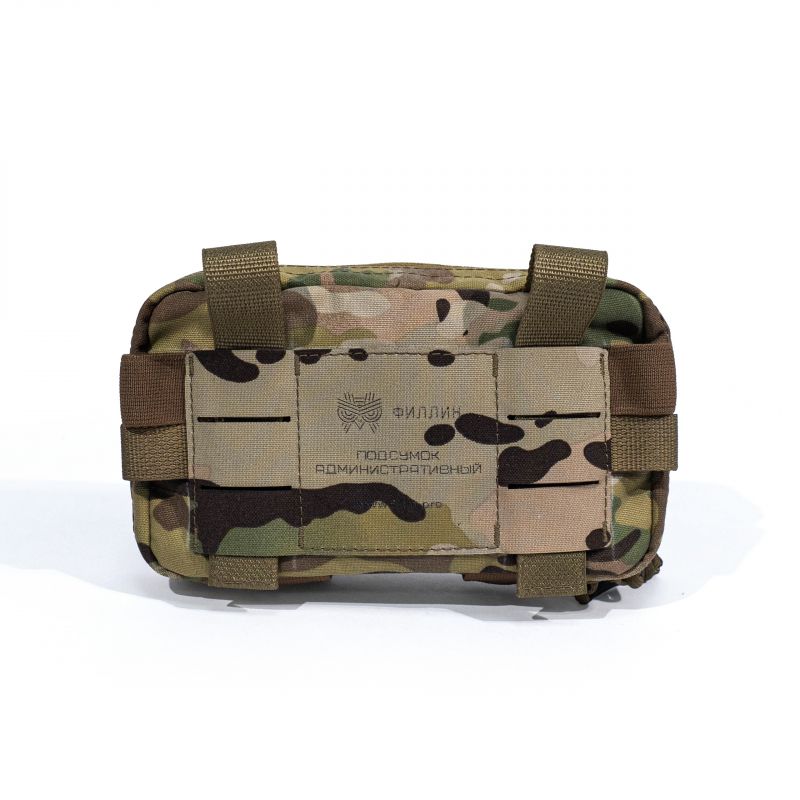 Подсумок для переноски карты, необходимых мелочей, отлично подходящий для размещения на груди бронежилета за счёт своей низкопрофильности. Благодаря съёмному внутреннему креплению, внутри подсумка можно закрепить мобильный телефон с установленными картами. Дополнительный комфорт при работе с телефоном также обеспечит возможность переноски повербанка, с выводом под провода к телефону, и возможность регулировки угла откидывания подсумка, что позволяет не беспокоиться за потерю имущества при незакрытой молнии. Также, подсумок комплектуется чехлом под карту из прозрачного материала, не ломающимся на морозе. Наружная сторона подсумка имеет молле-ячейки, а также велкро-панель. Снаружи подсумка также можно крепить карабины, маркеры и химические источники света.