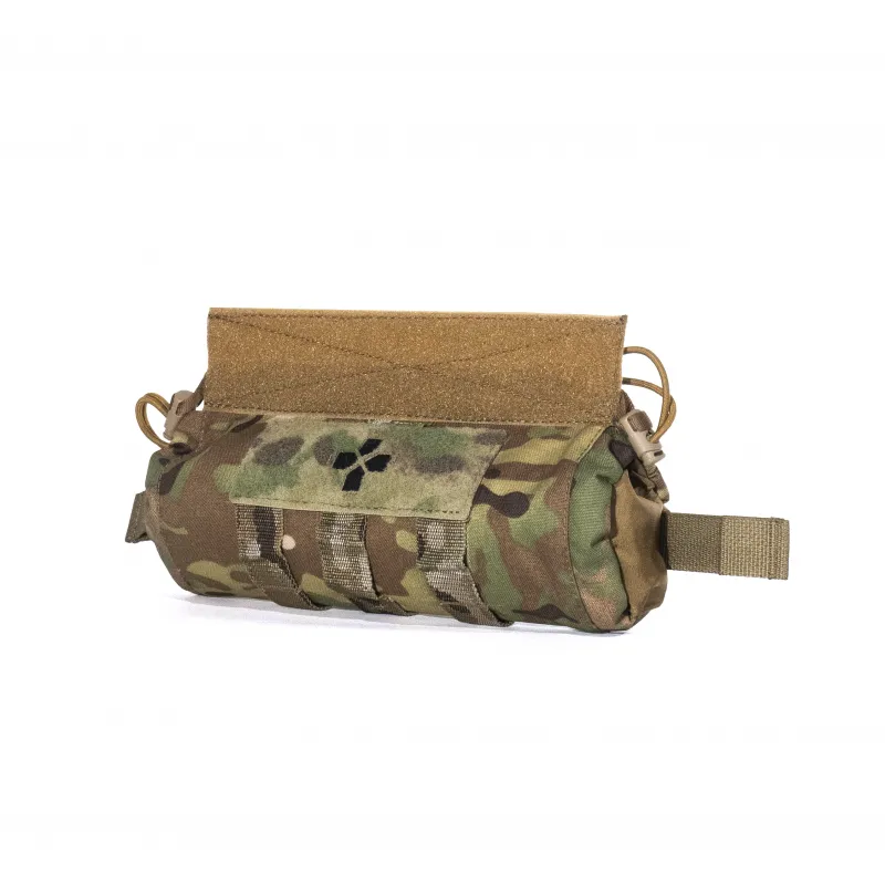 Ключевая идея подсумка. продиктованная реалиями СВО и опытом бойцов — размещение дополнительного комплекта средств остановки кровотечений и стабилизации состояния раненых в зоне доступа обеих рук. Подсумок должен дополнять основной комплект медицинских средств первого и второго эшелона, являться так называемым «нулевым», «сверхнеотложным». Если данный подсумок используется в качестве основного и единственного, то часть средств из перечня IFAK необходимо размещать на внешней стороне тубуса или осознанно отказываться от них в нарушение всех регламентов.