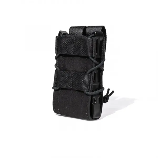 Подсумок, разработанный для «быстрой» работы. Классический дизайн, простая конструкция и максимальная надёжность. Подсумки данной серии надёжно удерживают содержимое и оставляют возможность быстрого извлечения. За счет гибкой регулировки эластичным шнуром, возможна эксплуатация с различными с магазинами: АК (5.45/7.62), АС, ВСС. Особенностью конструкции являются уникальные направляющие, изготовленные из специализированного полиуретана, который не боится перепада температуры (температура эксплуатации от -60 °С до +90 °С), при этом сохраняет превосходное сцепление с магазином, гибкость и устойчивость к износу на всем указанном диапазоне.