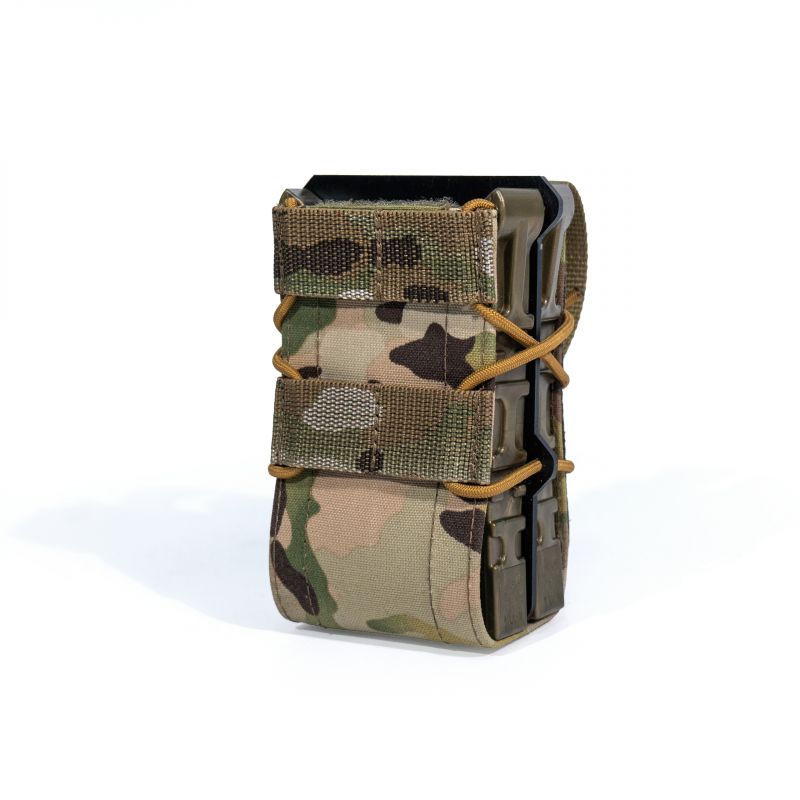 Подсумок, разработанный для «быстрой» работы. Классический дизайн, простая конструкция и максимальная надёжность. Подсумки данной серии надёжно удерживают содержимое и оставляют возможность быстрого извлечения. За счет гибкой регулировки эластичным шнуром, возможна эксплуатация с различными с магазинами: АК (5.45/7.62), АС, ВСС. Особенностью конструкции являются уникальные направляющие, изготовленные из специализированного полиуретана, который не боится перепада температуры (температура эксплуатации от -60 °С до +90 °С), при этом сохраняет превосходное сцепление с магазином, гибкость и устойчивость к износу на всем указанном диапазоне.