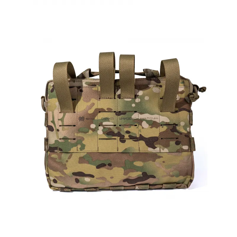 На задней поверхности сумки присутствует MOLLE-интерфейс для размещения сумки, например, на рюкзаках или же на спинной части бронежилета. По бокам и на нижней части сумки также есть ряд строп MOLLE для размещения дополнительных подсумков или же жгутов-турникетов. Присутствуют широкие люверсы для удаления мусора и стока воды.