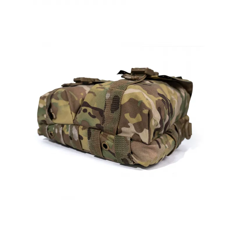 На задней поверхности сумки присутствует MOLLE-интерфейс для размещения сумки, например, на рюкзаках или же на спинной части бронежилета. По бокам и на нижней части сумки также есть ряд строп MOLLE для размещения дополнительных подсумков или же жгутов-турникетов. Присутствуют широкие люверсы для удаления мусора и стока воды.