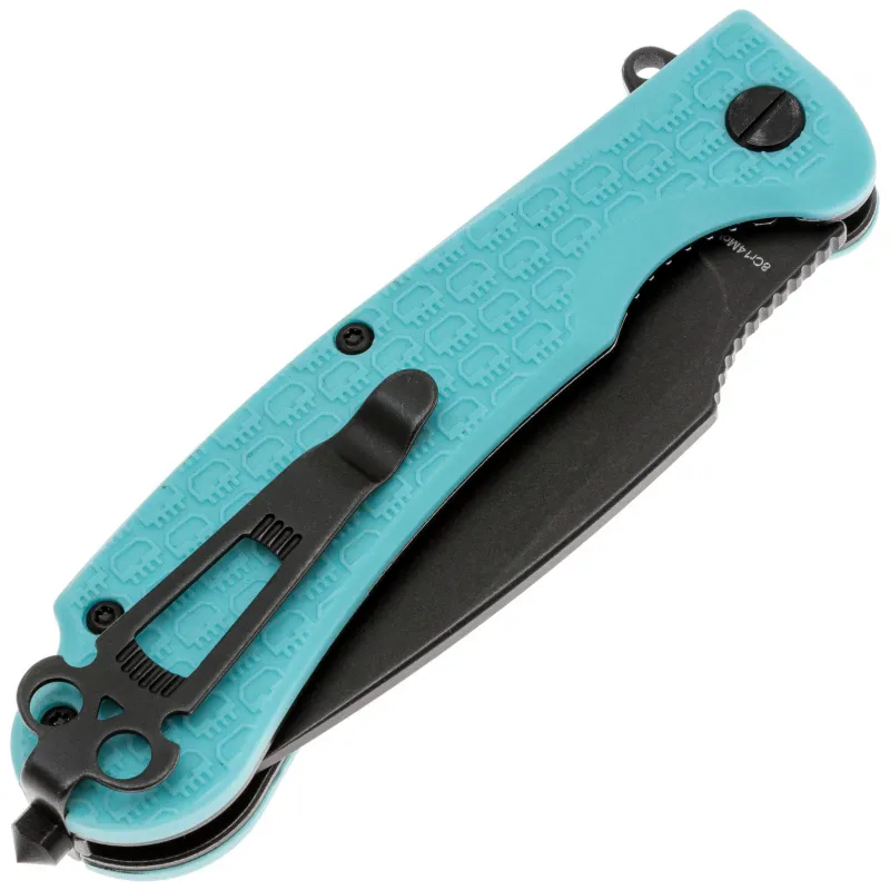 Рукоять выполнена из FRN (армированного стекловолокном нейлона) — прочного и лёгкого материала с хорошей стойкостью к ударам и влаге. Поверхность текстурированная для улучшенного сцепления, а выраженные подпальцевые выемки на рукояти и клинке усиливают контроль над ножом, даже если руки мокрые или в перчатках. Эргономика выверена: нож уверенно лежит в руке и не вызывает усталости при длительном использовании. Карманная клипса в фирменной форме добавляет харизмы и узнаваемости. Также на торце предусмотрен стеклобой — важный элемент для экстренных ситуаций. Отверстие под темляк позволяет дооснастить нож по своему вкусу.