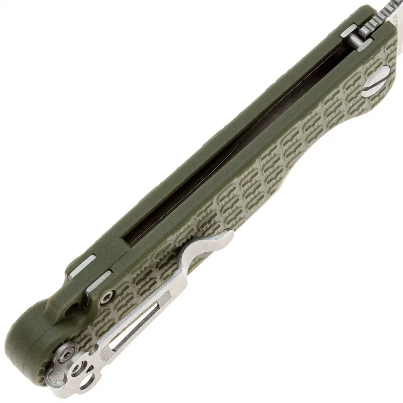 Рукоять выполнена из FRN — современного высокотехнологичного материала, который обеспечивает оптимальное сочетание лёгкости, прочности и устойчивости к внешним воздействиям. FRN отличается превосходной ударопрочностью, коррозионной стойкостью и минимальным весом, что делает нож удобным для ежедневного ношения. Рукоять ножа выполнена с учётом эргономических требований, обеспечивая комфортный хват несмотря на компактные размеры. Продуманная геометрия рукояти гарантирует надёжное удержание ножа в руке при любых условиях использования, а качественная обработка всех поверхностей делает нож приятным в эксплуатации. Для удобства ношения нож оснащён реверсивной клипсой, которую можно переставить как для правостороннего, так и для левостороннего крепления, что делает его универсальным для пользователей с любой ведущей рукой. Также предусмотрено темлячное отверстие для крепления страховочного шнура, что повышает безопасность использования ножа в экстремальных условиях и исключает возможность его потери.
