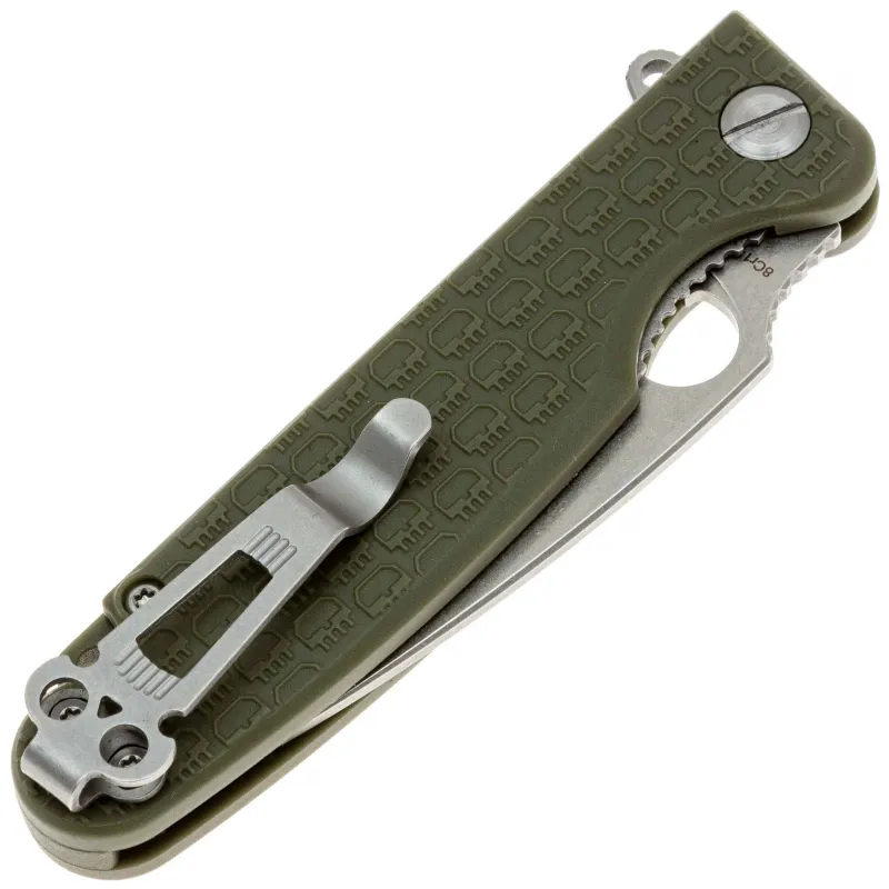 Особое внимание уделено механизму открытия ножа, который предоставляет пользователю сразу три удобных способа активации клинка. Основной метод — использование флиппера у основания клинка, который позволяет быстро и плавно открыть нож одной рукой простым нажатием указательного пальца. Особой изюминкой модели является фирменное отверстие в виде черепа, которое делает нож мгновенно узнаваемым и придаёт ему особую харизму. Третий способ — инерционное открытие резким движением руки, что добавляет ножу динамичности в использовании. Надёжность и безопасность использования обеспечивает проверенная система фиксации клинка. После полного открытия клинок надёжно закрепляется замком liner lock, что исключает случайное закрытие во время работы и гарантирует стабильную фиксацию даже при интенсивных нагрузках.