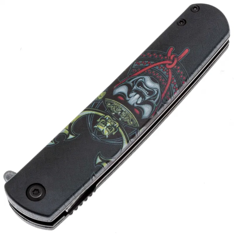 Рукоять, выполненная из прочного ABS-пластика, украшена изображением самурая, что добавляет ножу уникальности и характера. Эргономичная форма рукоятки обеспечивает удобный захват и надежное управление ножом в любых условиях. Кроме того, наличие стальной клипсы делает нож G626 удобным для повседневного ношения. Он легко крепится к карману или ремню, всегда оставаясь под рукой для решения повседневных задач.