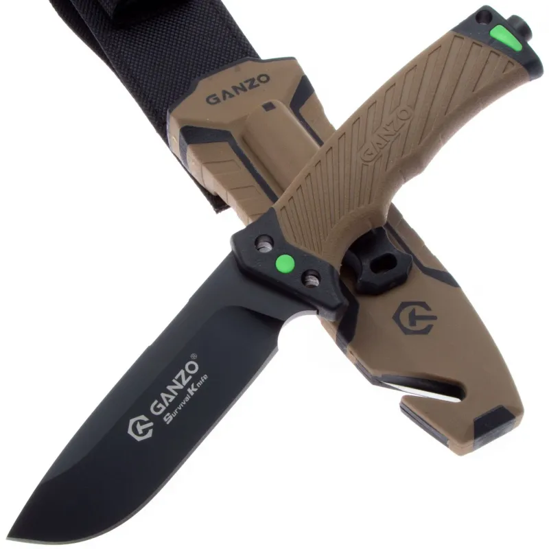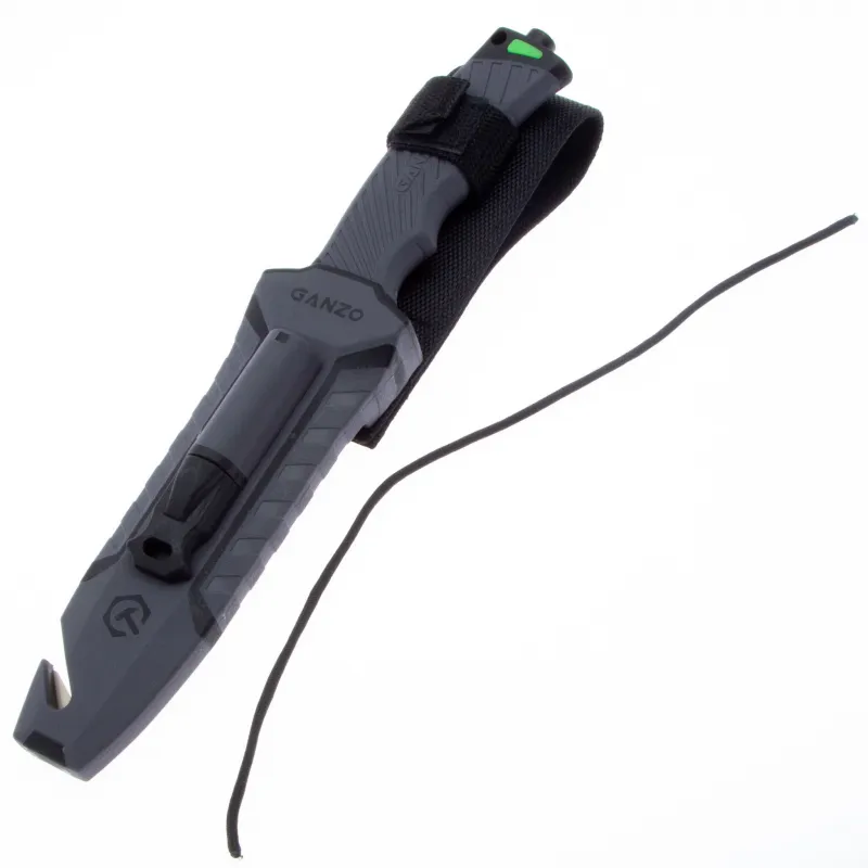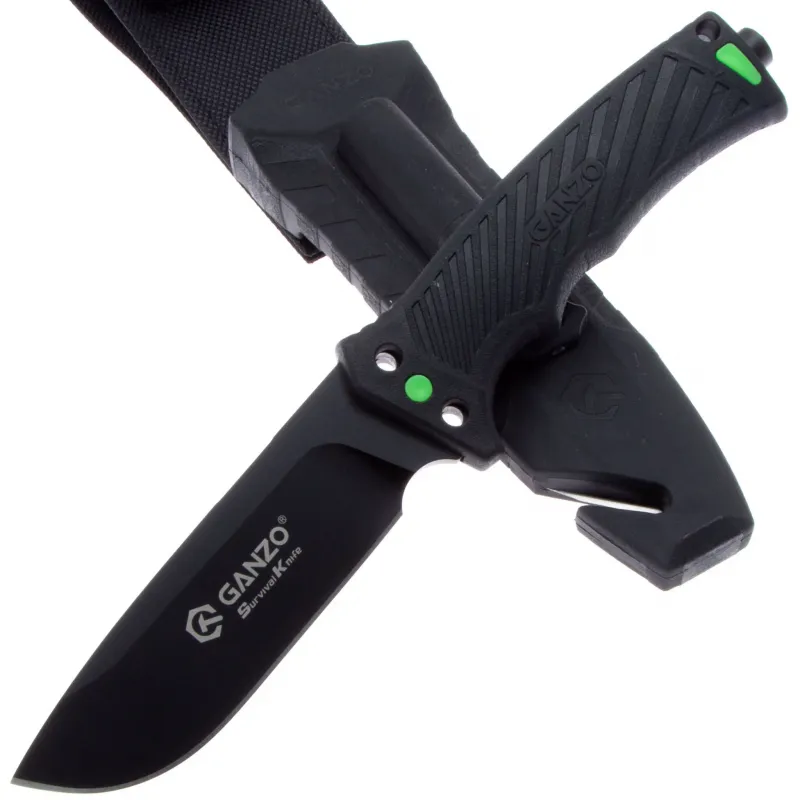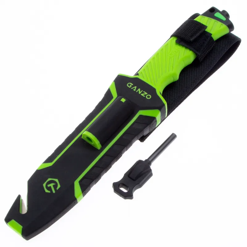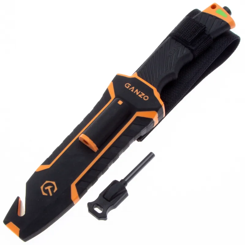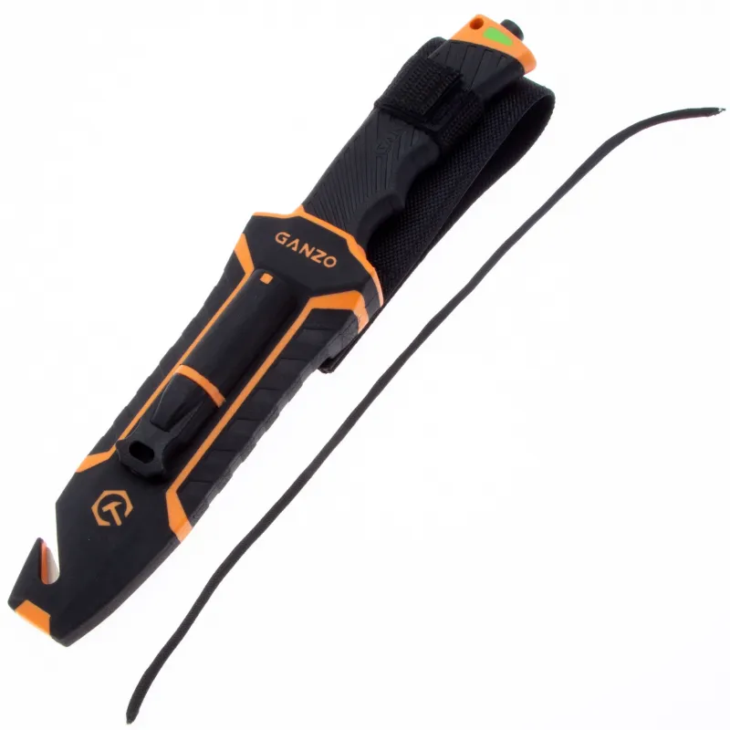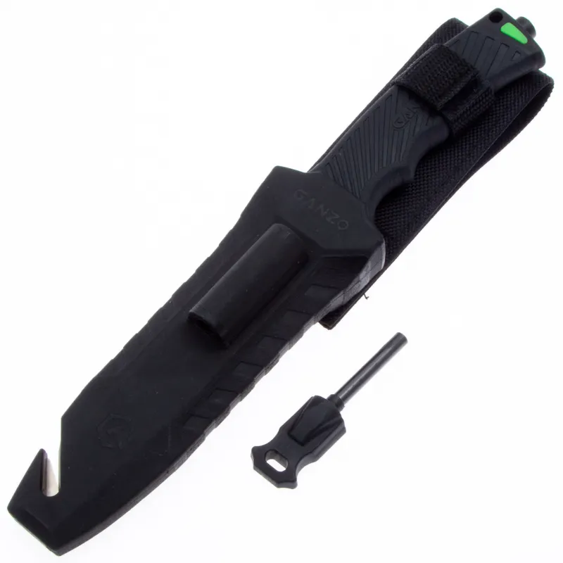 Модель Ganzo G8012 позиционируется как нож для выживания и целиком соответствует этому назначению. Нож продается вместе с ножнами, оснащенными несколькими дополнительными функциональностями, которые могут оказаться действительно незаменимыми в вашем путешествии. Чехол сделан из нейлона и пластика, а нож удерживает внутри при помощи застежки-липучки. С обратной стороны чехла встроена компактная металлическая пластина с алмазным напылением, которая является практичной и легкой точилкой для ровного участка лезвия. Кроме того, в чехол встроен стропорез, а в специальном гнезде закреплено вынимающееся огниво. В дополнение к этому, рукоятка ножа оканчивается небольшим плоским выступом, выполняющим роль стеклобоя. Стеклобой закреплен на фиксатор резьбы и во избежание её поломки, категорически не рекомендуется пытаться открутить стеклобой. Имея в своем распоряжении ножик Ganzo G8012, можно смело отправляться в любую экспедицию. Ведь он поможет достойно выбраться даже из самых экстремальных ситуаций.