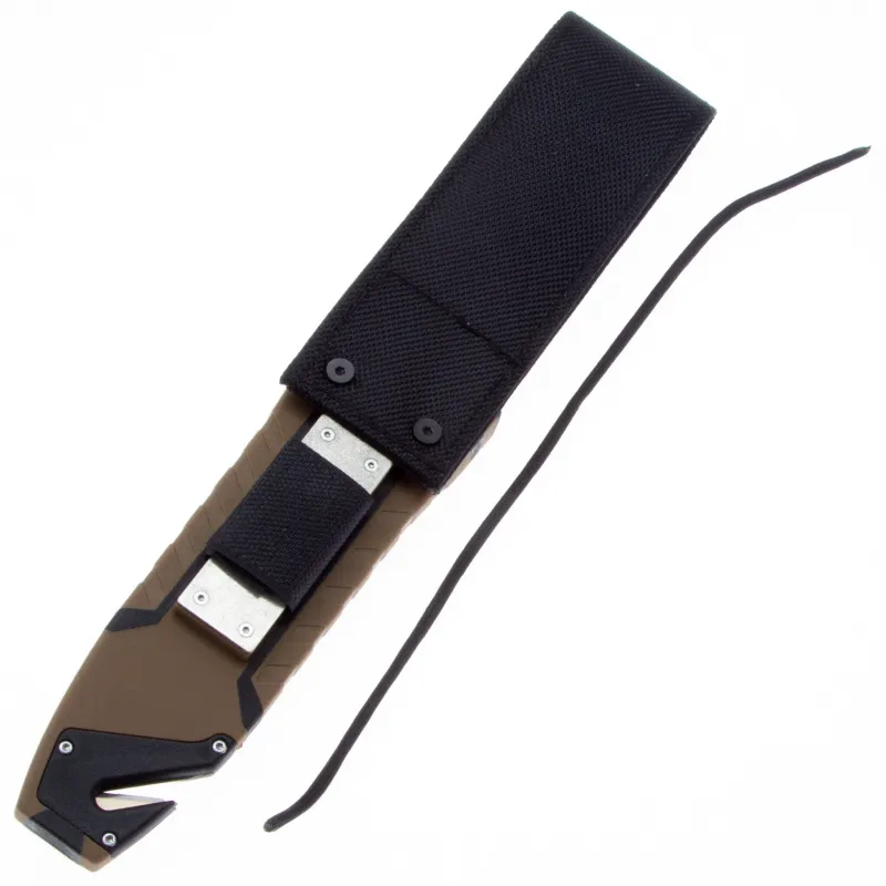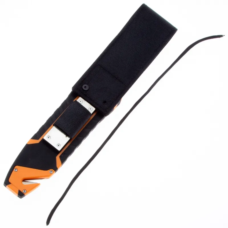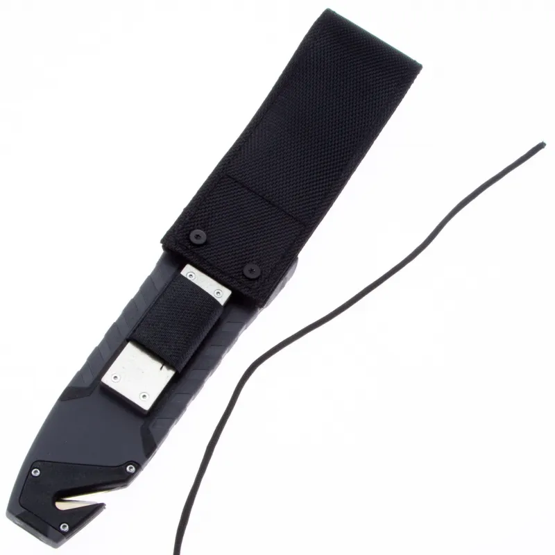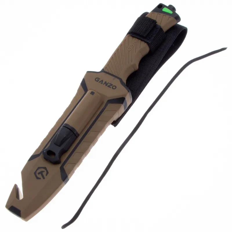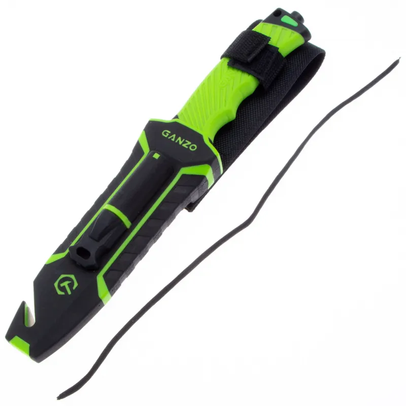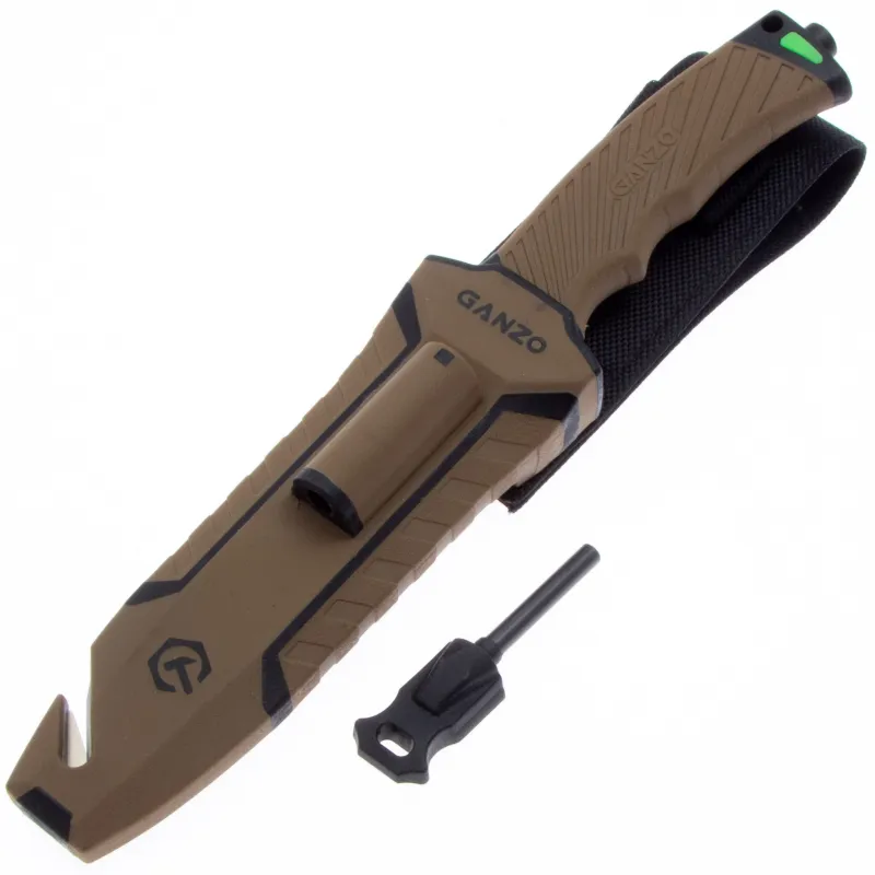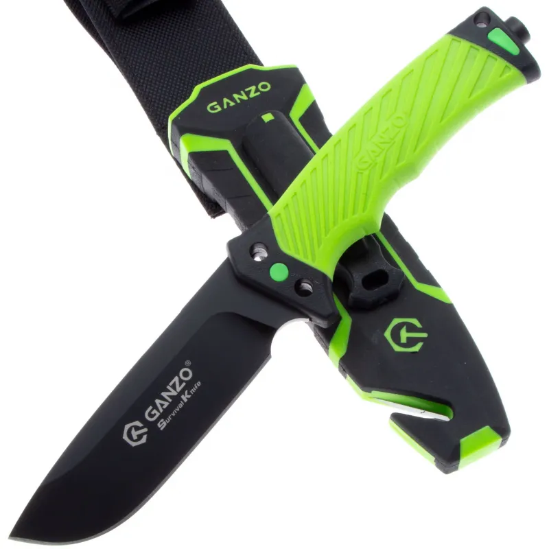 Модель Ganzo G8012 позиционируется как нож для выживания и целиком соответствует этому назначению. Нож продается вместе с ножнами, оснащенными несколькими дополнительными функциональностями, которые могут оказаться действительно незаменимыми в вашем путешествии. Чехол сделан из нейлона и пластика, а нож удерживает внутри при помощи застежки-липучки. С обратной стороны чехла встроена компактная металлическая пластина с алмазным напылением, которая является практичной и легкой точилкой для ровного участка лезвия. Кроме того, в чехол встроен стропорез, а в специальном гнезде закреплено вынимающееся огниво. В дополнение к этому, рукоятка ножа оканчивается небольшим плоским выступом, выполняющим роль стеклобоя. Стеклобой закреплен на фиксатор резьбы и во избежание её поломки, категорически не рекомендуется пытаться открутить стеклобой. Имея в своем распоряжении ножик Ganzo G8012, можно смело отправляться в любую экспедицию. Ведь он поможет достойно выбраться даже из самых экстремальных ситуаций.