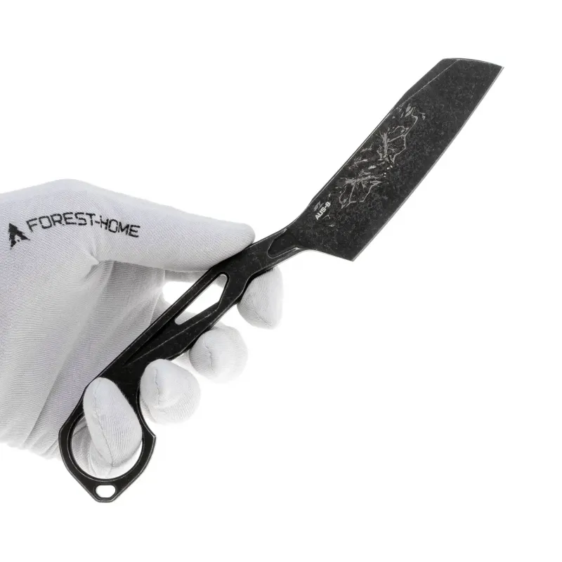 Клинок имеет форму sheepfoot, что обеспечивает отличные режущие характеристики, особенно при выполнении задач, требующих высокой точности и контроля. Сталь AUS-8 гарантирует отличную износостойкость и долговечность клинка, сохраняя при этом хорошую заточку и легкость в уходе. На поверхности клинка обработка blackwash, которая придаёт ему стильный и агрессивный внешний вид, а также скрывает мелкие царапины и следы использования.
