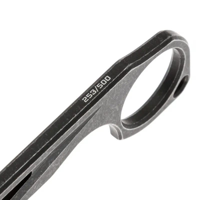 Рукоять ножа изготовлена из стали, что придает конструкции исключительную надежность и долговечность. Эргономичная форма обеспечивает комфортный захват, а крупное кольцо на тыльнике добавляет функциональности, позволяя легко менять хват. Такой дизайн делает нож удобным в использовании, даже в сложных условиях.