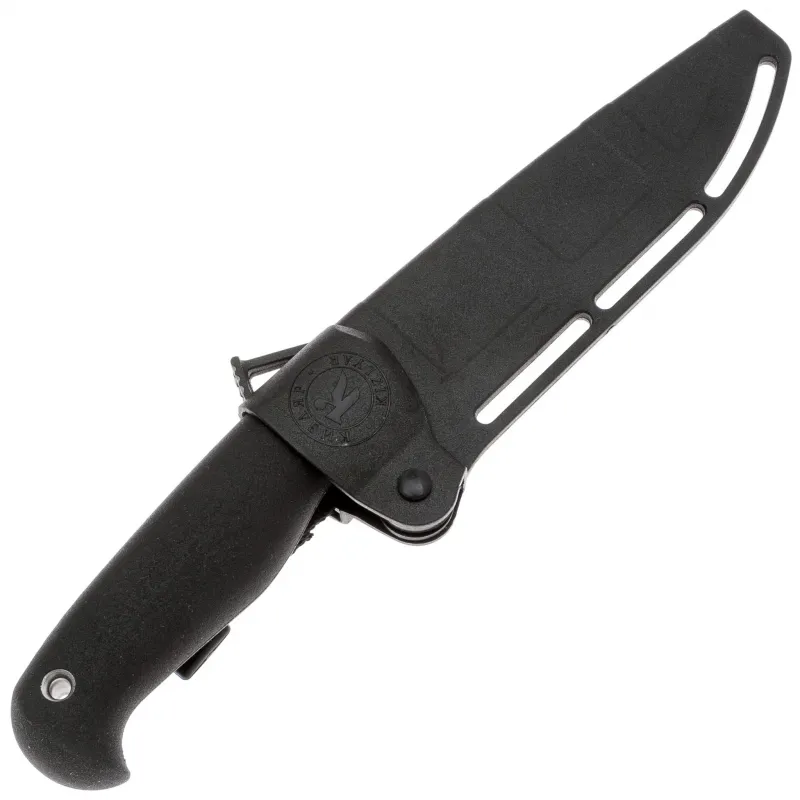 Для переноски используется ножны из ABS-пластика, жёсткие, формованные под нож. Они обеспечивают надёжную фиксацию и защиту клинка при транспортировке, хорошо переносят влагу, грязь и перепады температур. Благодаря универсальной конструкции, их удобно крепить к поясу или экипировке.