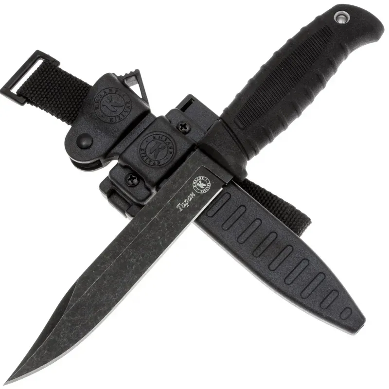 Туристический нож Кизляр Таран сталь AUS-8 черный, рукоять эластрон Черный/ножны АБС