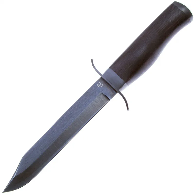 Клинок выполнен из простой рессорной стали 65г. Обладает хорошими режущими свойствами и повышенной износостойкостью, а также поддается оксидированию (воронению, чернению). Полоса или лист 65Г успешно применяются для изготовления ножей. В основном из этой стали изготавливают метательные ножи, реже — разделочные. Считается, что сталь 65Г один из самых дешевых материалов для изготовления ножей, так что ножи из этой стали будут делать еще долго.