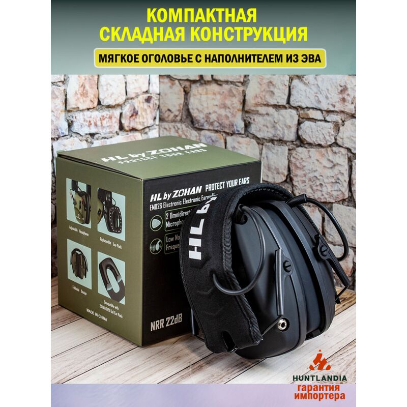 Активные наушники для стрельбы HuntLandia by ZOHAN EM026 Black