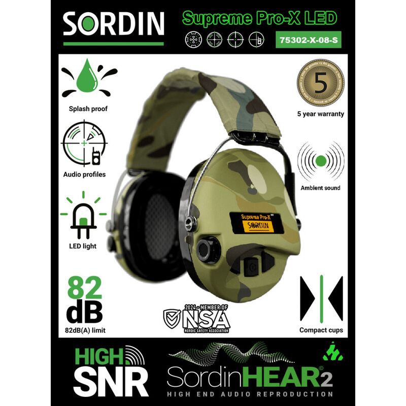 Камуфляжные активные наушники Sordin Supreme Pro-X Led Camo