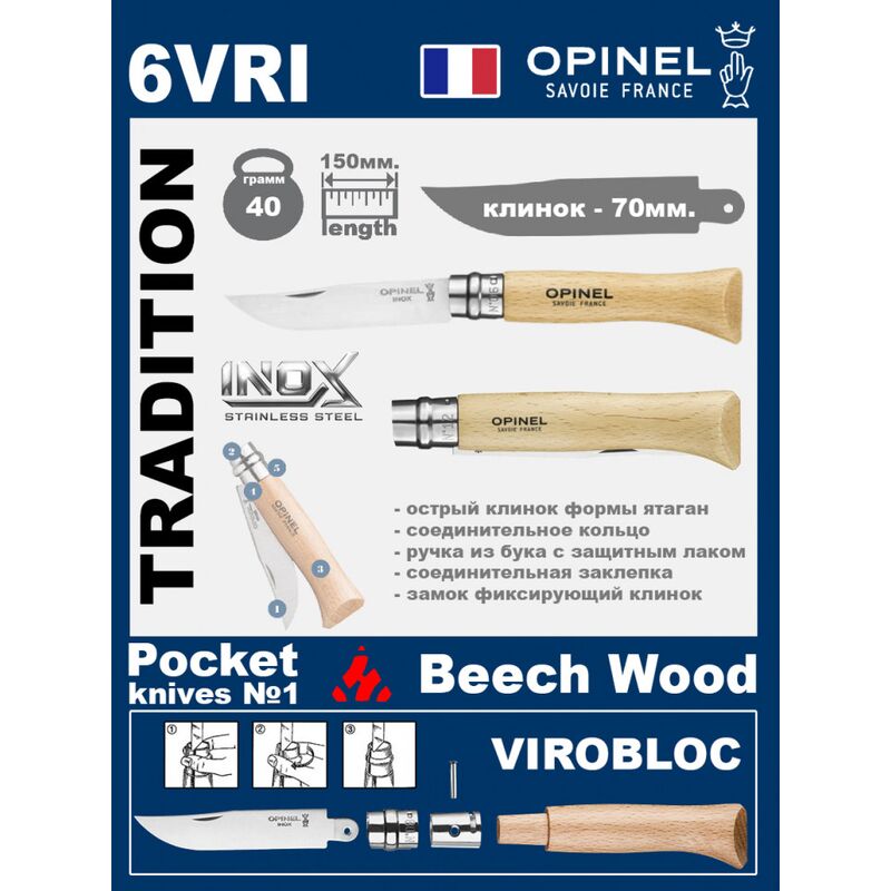 Складной нож Opinel Inox 6VRI (ручка из бука)