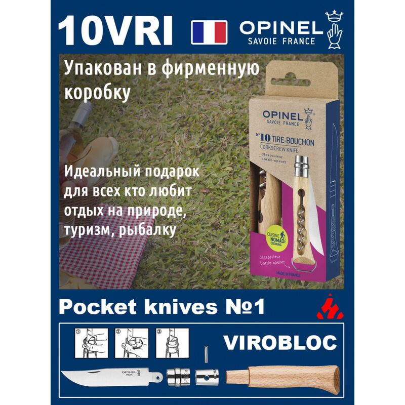 Складной нож со штопором и открывалкой бутылок Opinel Inox 10VRI
