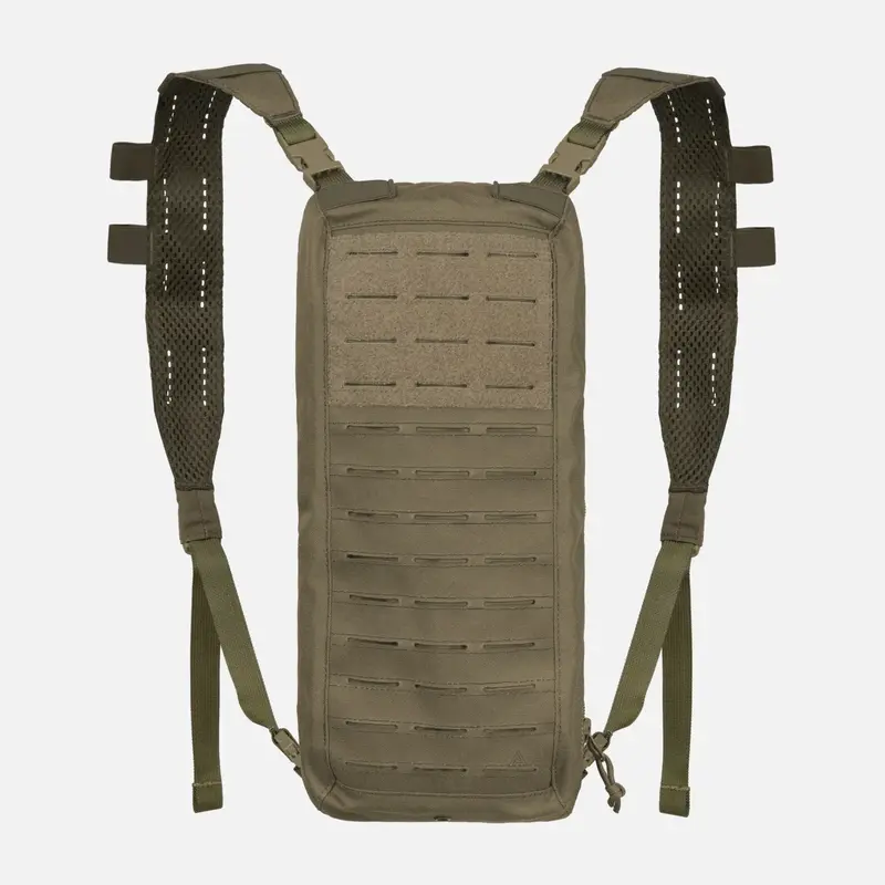 Легкий универсальный держатель для гидратационного пузыря. Подходит для большинства популярных мочевых пузырей емкостью 2 литра. Трехмерный дизайн позволяет носителю расширяться наружу, не причиняя дискомфорта пользователю. Боковая застежка-молния обеспечивает легкий доступ к мочевому пузырю. На внешней поверхности имеются прорези MOLLE/ PALS, позволяющие прикреплять дополнительные подсумки. Пакет Multi Hydro может крепиться несколькими способами: с помощью PALS, встроенных ремней или к H-образному ремню безопасности MOSQUITO®. Трубка гидратационного баллона может быть направлена как влево, так и вправо.