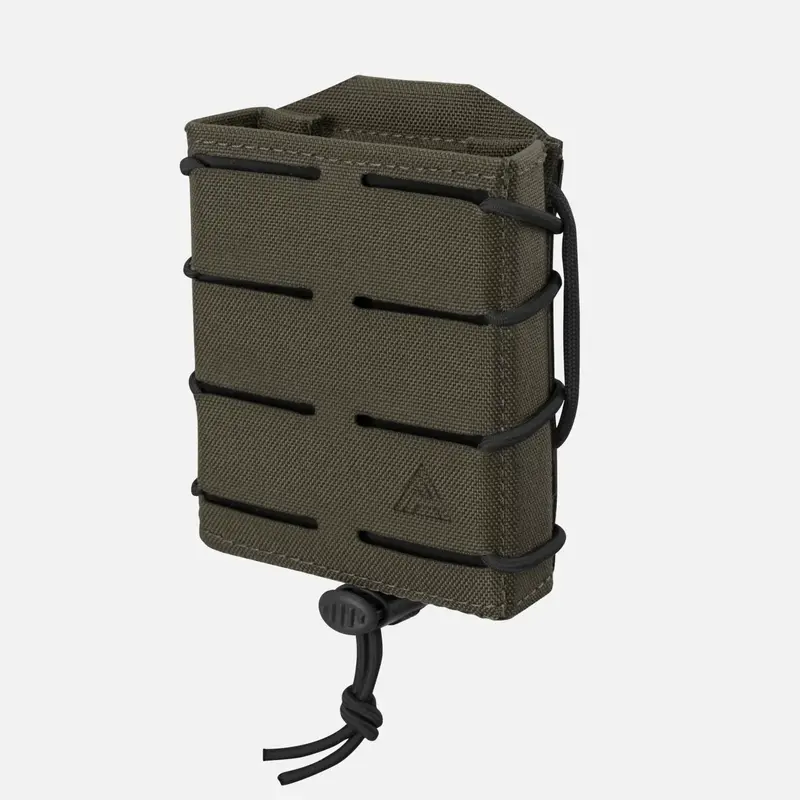 Внутренняя часть подсумка покрыта материалом Hypalon®, который усиливает трение и предотвращает случайную потерю магазина, даже если подсумок зацепится за препятствие. Отверстие размером с магнит и регулируемое крепление амортизационного шнура позволяют точно настроить силу захвата в соответствии с вашими предпочтениями.