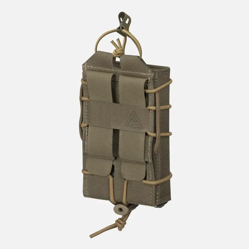 Винтовка Speed Reload Pouch с открытым верхом предназначена для молниеносной замены магазина без риска потерять его. Его внутренняя поверхность увеличивает трение, в то время как компактное отверстие и регулируемое крепление ударного шнура обеспечивают сохранность магазина, но при этом он готов к извлечению за долю секунды.Изготовленный из полужесткого фирменного ламината, усиленного вставками, и обернутый в Cordura®, подсумок сохраняет свою форму, даже когда он пуст, что особенно важно при перезарядке в темноте или под давлением. В него помещается один магазин типа AR, AK или SR.Подсумочная винтовка Speed Reload крепится непосредственно к тактическим поясам или платформам MOLLE/PALS. Передняя панель, вырезанная лазером, позволяет складывать дополнительные пакеты, не увеличивая объем упаковки.
