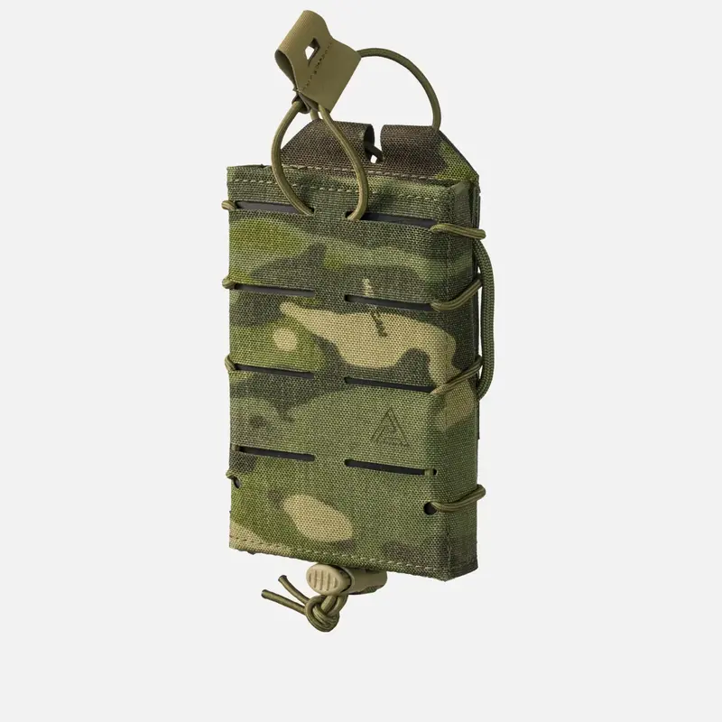 Винтовка Speed Reload Pouch с открытым верхом предназначена для молниеносной замены магазина без риска потерять его. Его внутренняя поверхность увеличивает трение, в то время как компактное отверстие и регулируемое крепление ударного шнура обеспечивают сохранность магазина, но при этом он готов к извлечению за долю секунды.Изготовленный из полужесткого фирменного ламината, усиленного вставками, и обернутый в Cordura®, подсумок сохраняет свою форму, даже когда он пуст, что особенно важно при перезарядке в темноте или под давлением. В него помещается один магазин типа AR, AK или SR.Подсумочная винтовка Speed Reload крепится непосредственно к тактическим поясам или платформам MOLLE/PALS. Передняя панель, вырезанная лазером, позволяет складывать дополнительные пакеты, не увеличивая объем упаковки.