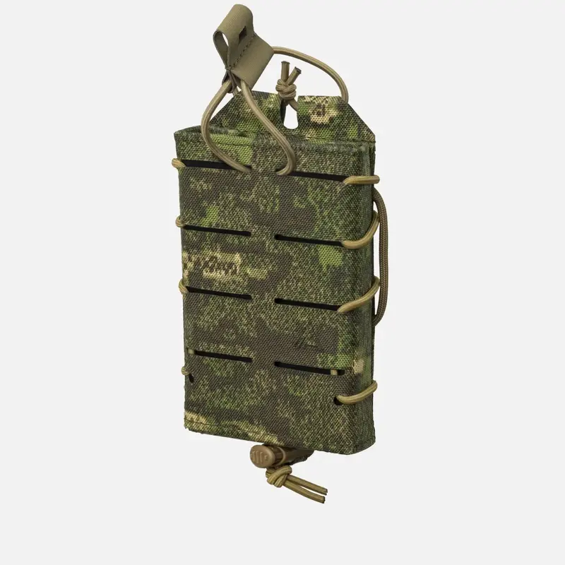 Винтовка Speed Reload Pouch с открытым верхом предназначена для молниеносной замены магазина без риска потерять его. Его внутренняя поверхность увеличивает трение, в то время как компактное отверстие и регулируемое крепление ударного шнура обеспечивают сохранность магазина, но при этом он готов к извлечению за долю секунды.Изготовленный из полужесткого фирменного ламината, усиленного вставками, и обернутый в Cordura®, подсумок сохраняет свою форму, даже когда он пуст, что особенно важно при перезарядке в темноте или под давлением. В него помещается один магазин типа AR, AK или SR.Подсумочная винтовка Speed Reload крепится непосредственно к тактическим поясам или платформам MOLLE/PALS. Передняя панель, вырезанная лазером, позволяет складывать дополнительные пакеты, не увеличивая объем упаковки.