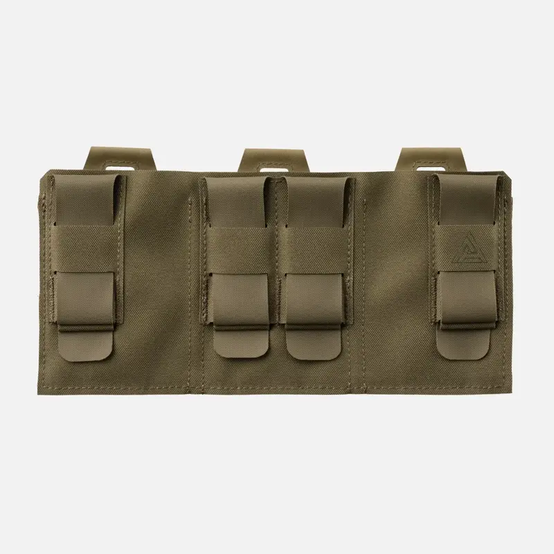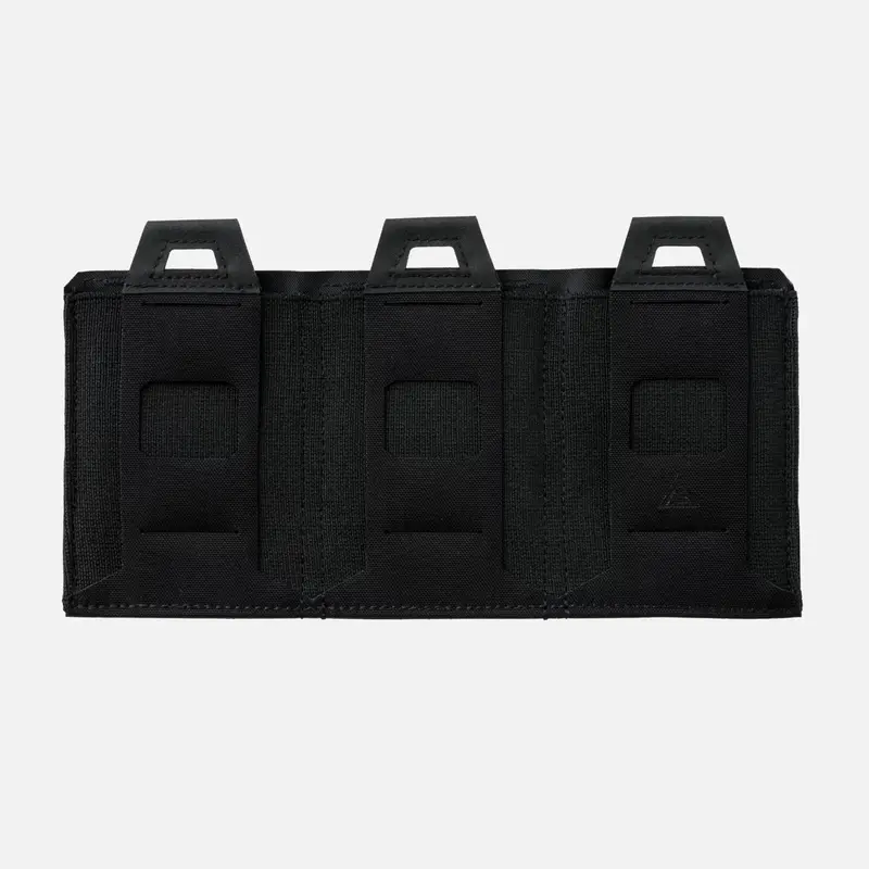 Эластичный подсумок Triple Flat - это тройной плоский подсумок, предназначенный для дополнительного снаряжения. Его плоская и легкая конструкция минимально увеличивает вес снаряжения, но позволяет носить дополнительные магазины, гранаты или другое снаряжение. Благодаря своему дизайну и используемым материалам (сочетание ламината и резины), в пустом виде сумка занимает минимум места. В передней части сумки вырезаны лазером отверстия, совместимые с системой MOLLE/PALS. Он герметичен снизу, обеспечивая защиту боеприпасов от грязи.