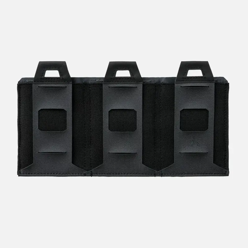 Эластичный подсумок Triple Flat - это тройной плоский подсумок, предназначенный для дополнительного снаряжения. Его плоская и легкая конструкция минимально увеличивает вес снаряжения, но позволяет носить дополнительные магазины, гранаты или другое снаряжение. Благодаря своему дизайну и используемым материалам (сочетание ламината и резины), в пустом виде сумка занимает минимум места. В передней части сумки вырезаны лазером отверстия, совместимые с системой MOLLE/PALS. Он герметичен снизу, обеспечивая защиту боеприпасов от грязи.