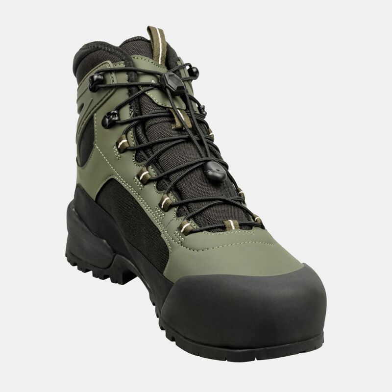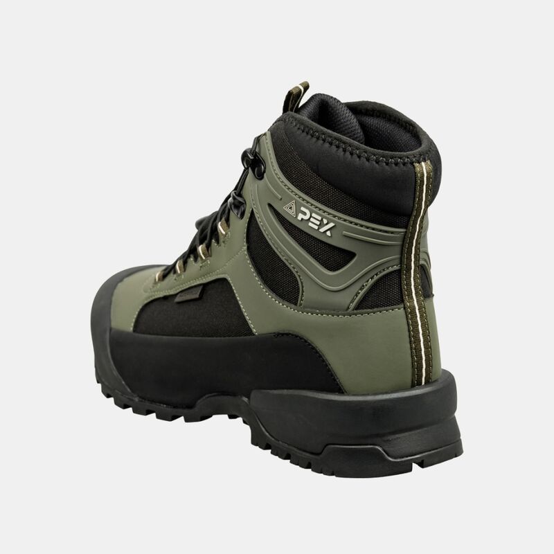 Верхняя часть ботинка изготовлена из комбинации высококачественной эко-кожи, обеспечивающей прочность и защиту, и износостойкой ткани, способствующей воздухопроницаемости. Внутренняя отделка выполнена с использованием мембраны APEX-TEX – передовой технологии, которая гарантирует превосходную водонепроницаемость и паропроницаемость, поддерживая оптимальный микроклимат внутри ботинка. Подошва представляет собой двухслойную конструкцию: промежуточный слой из легкого и амортизирующего материала EVA снижает ударную нагрузку, а внешний слой из прочной резины с развитым протектором обеспечивает надежное сцепление с различными типами поверхностей, предотвращая скольжение.